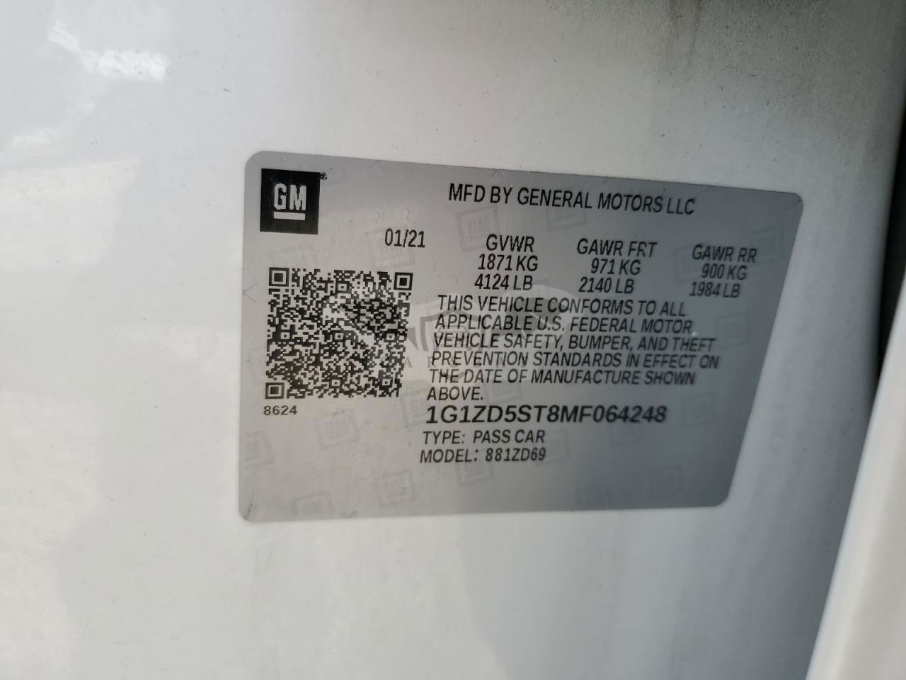 • VIN: 1G1ZD5ST8MF064248