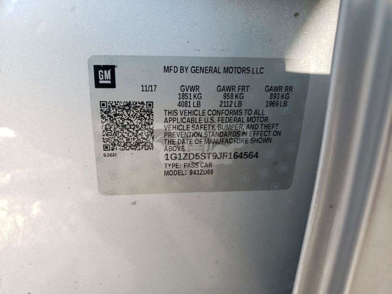 • VIN: 1G1ZD5ST9JF164564