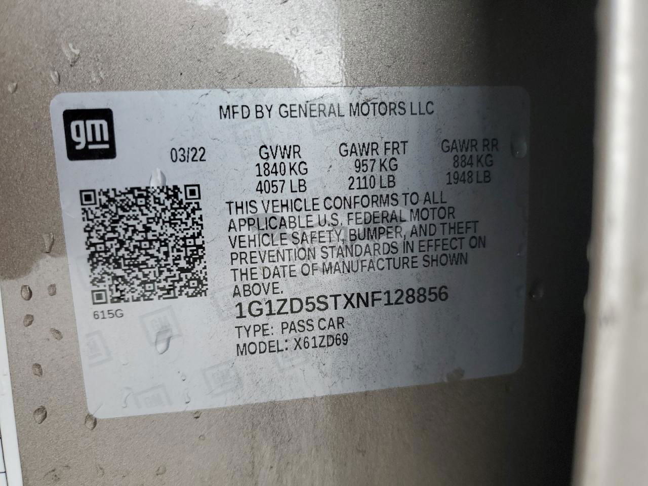 • VIN: 1G1ZD5STXNF128856