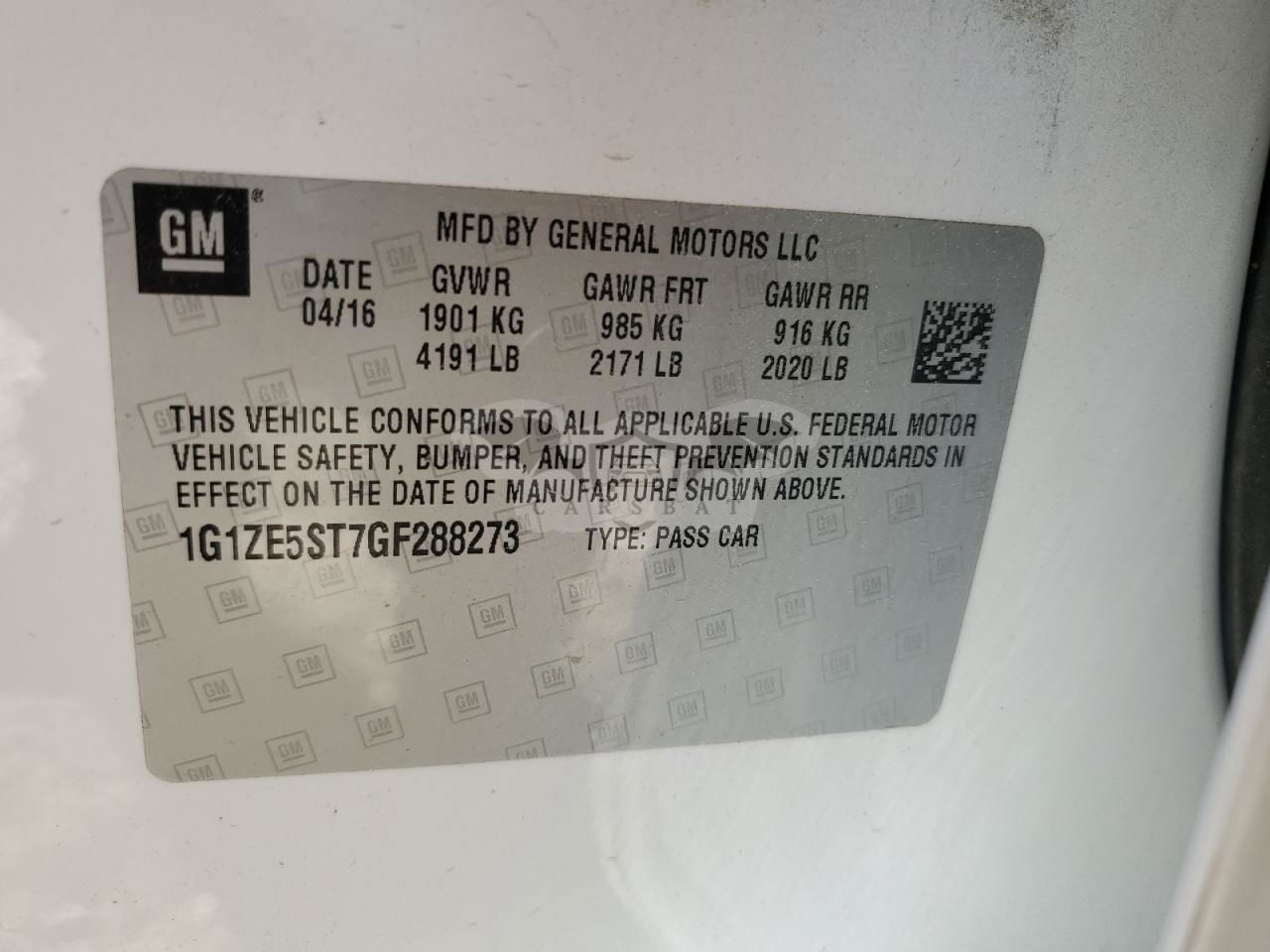 • VIN: 1G1ZE5ST7GF288273
