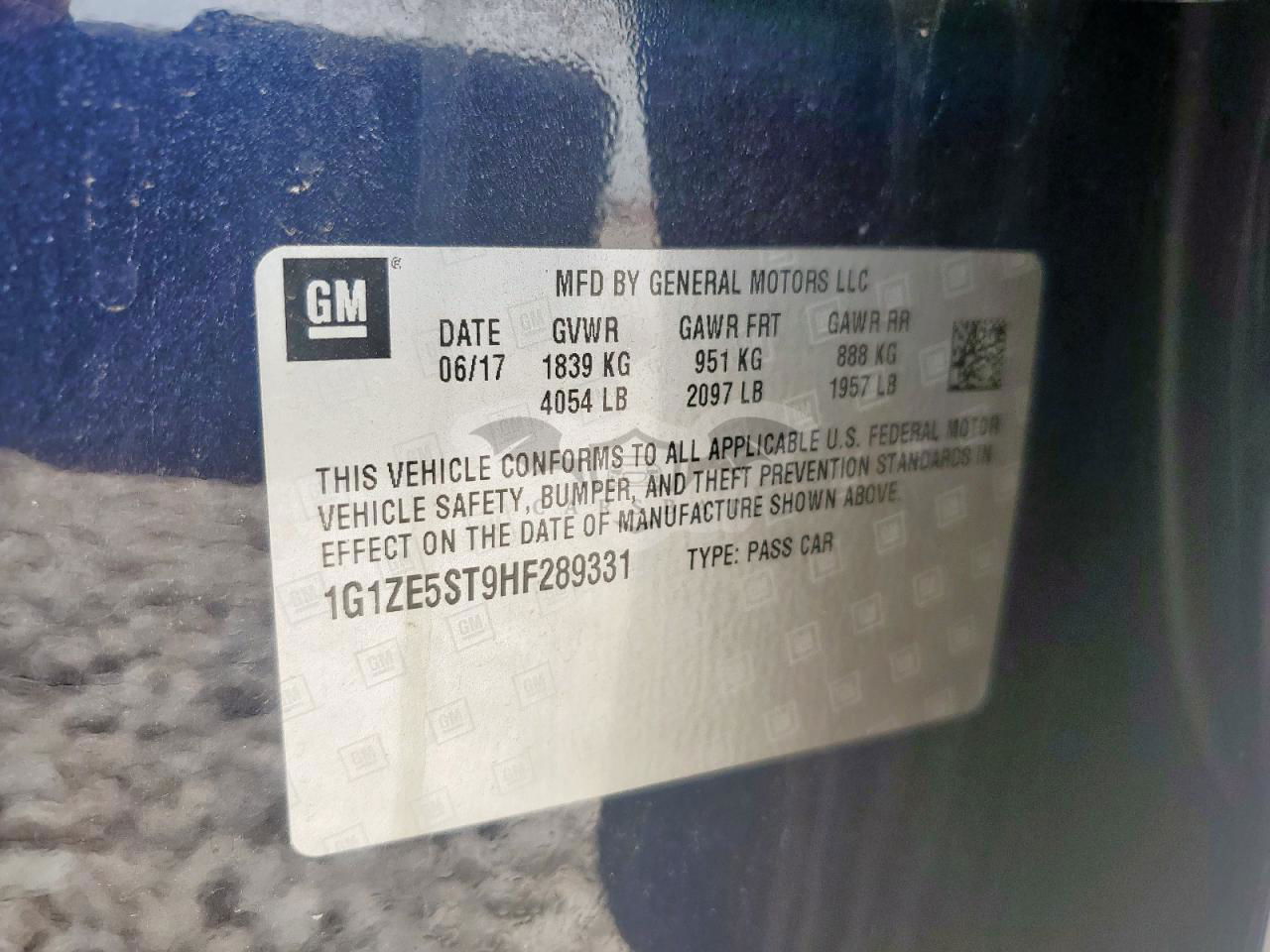 • VIN: 1G1ZE5ST9HF289331