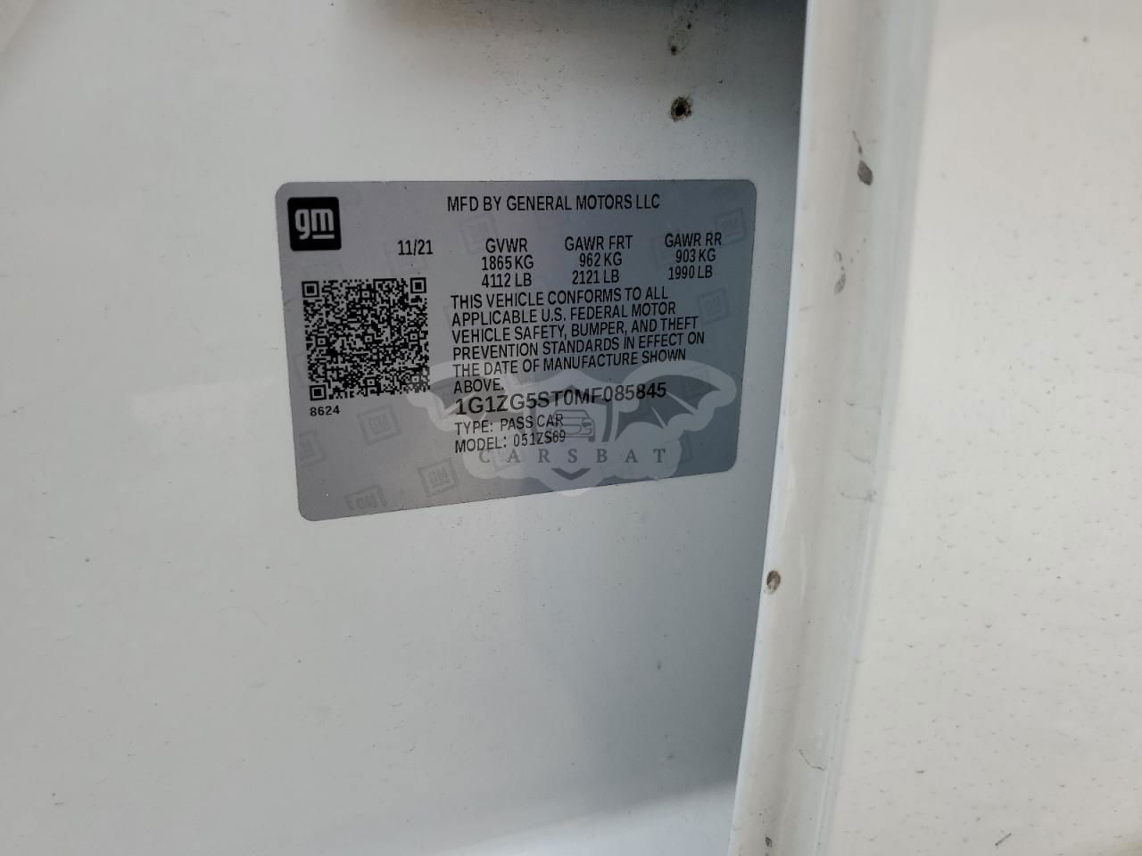 • VIN: 1G1ZG5ST0MF085845