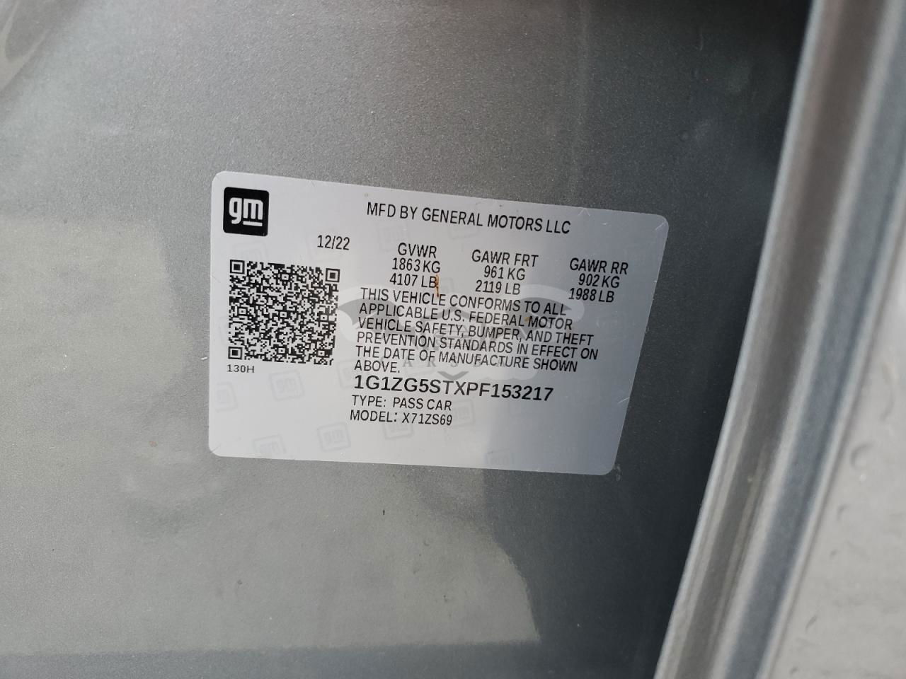 • VIN: 1G1ZG5STXPF153217
