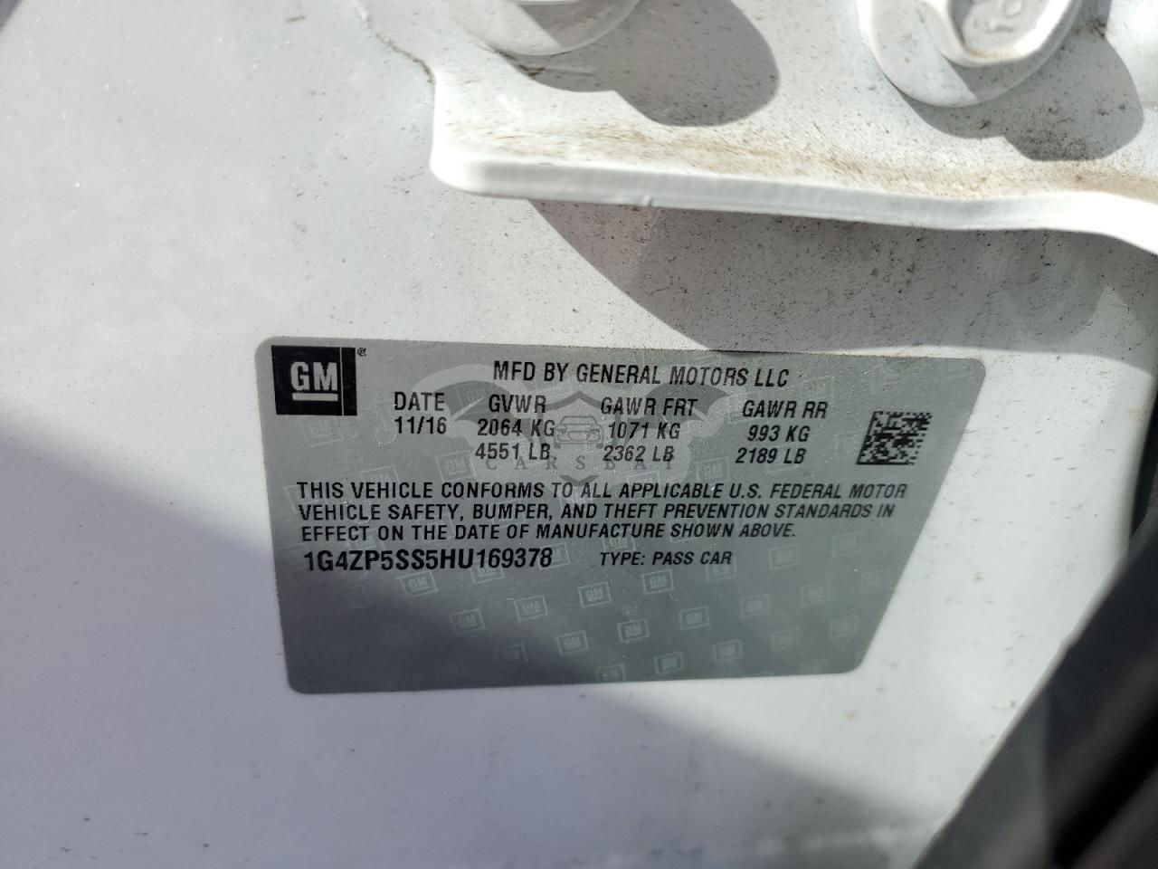 • VIN: 1G4ZP5SS5HU169378