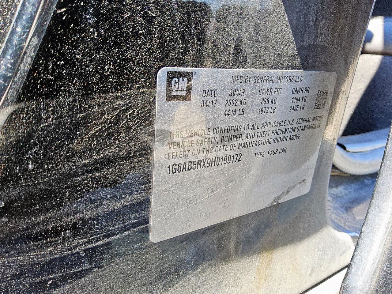 • VIN: 1G6AB5RX9H0199172