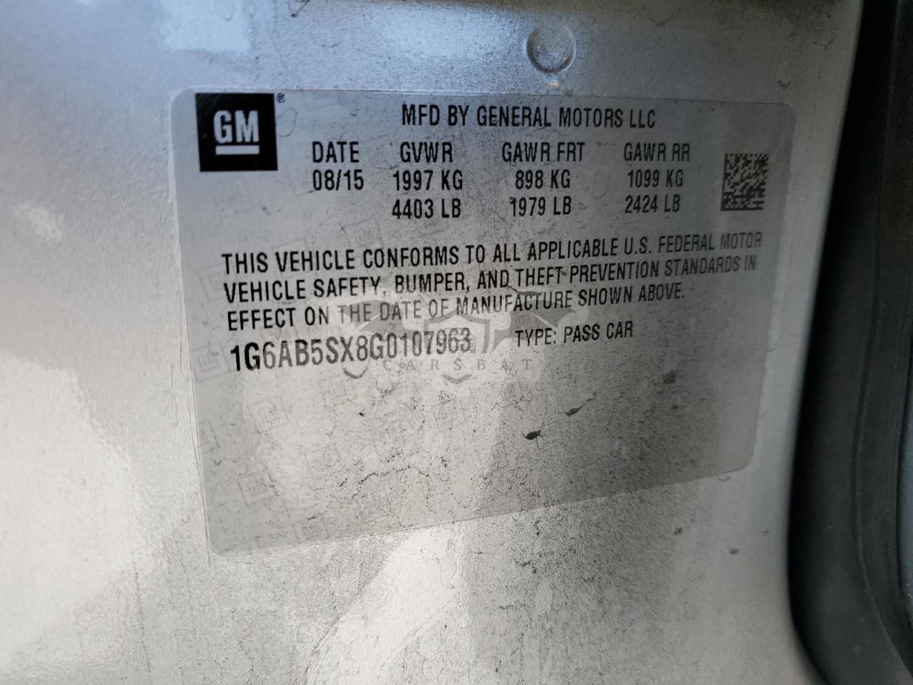 • VIN: 1G6AB5SX8G0107963