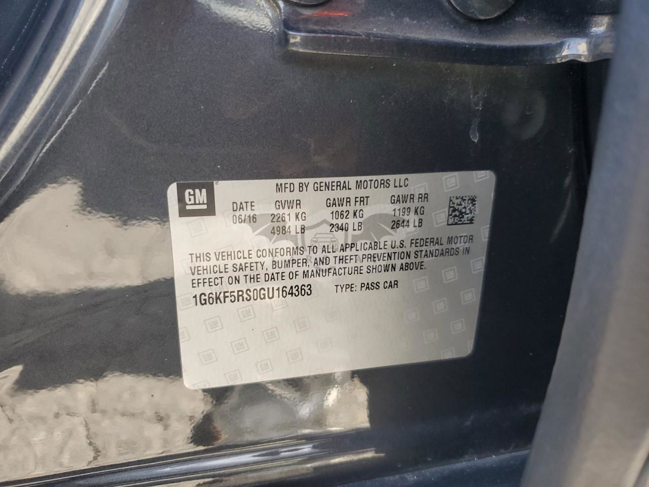 • VIN: 1G6KF5RS0GU164363