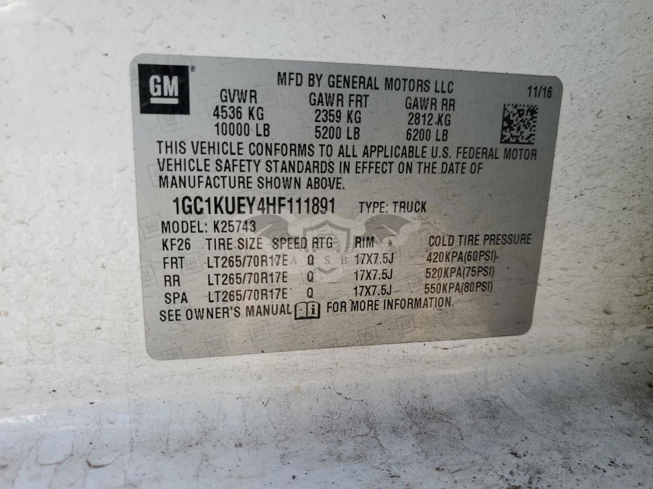 • VIN: 1GC1KUEY4HF111891