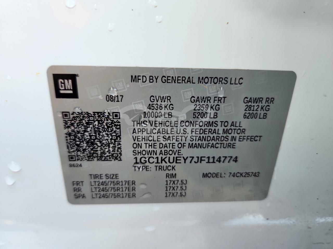 • VIN: 1GC1KUEY7JF114774