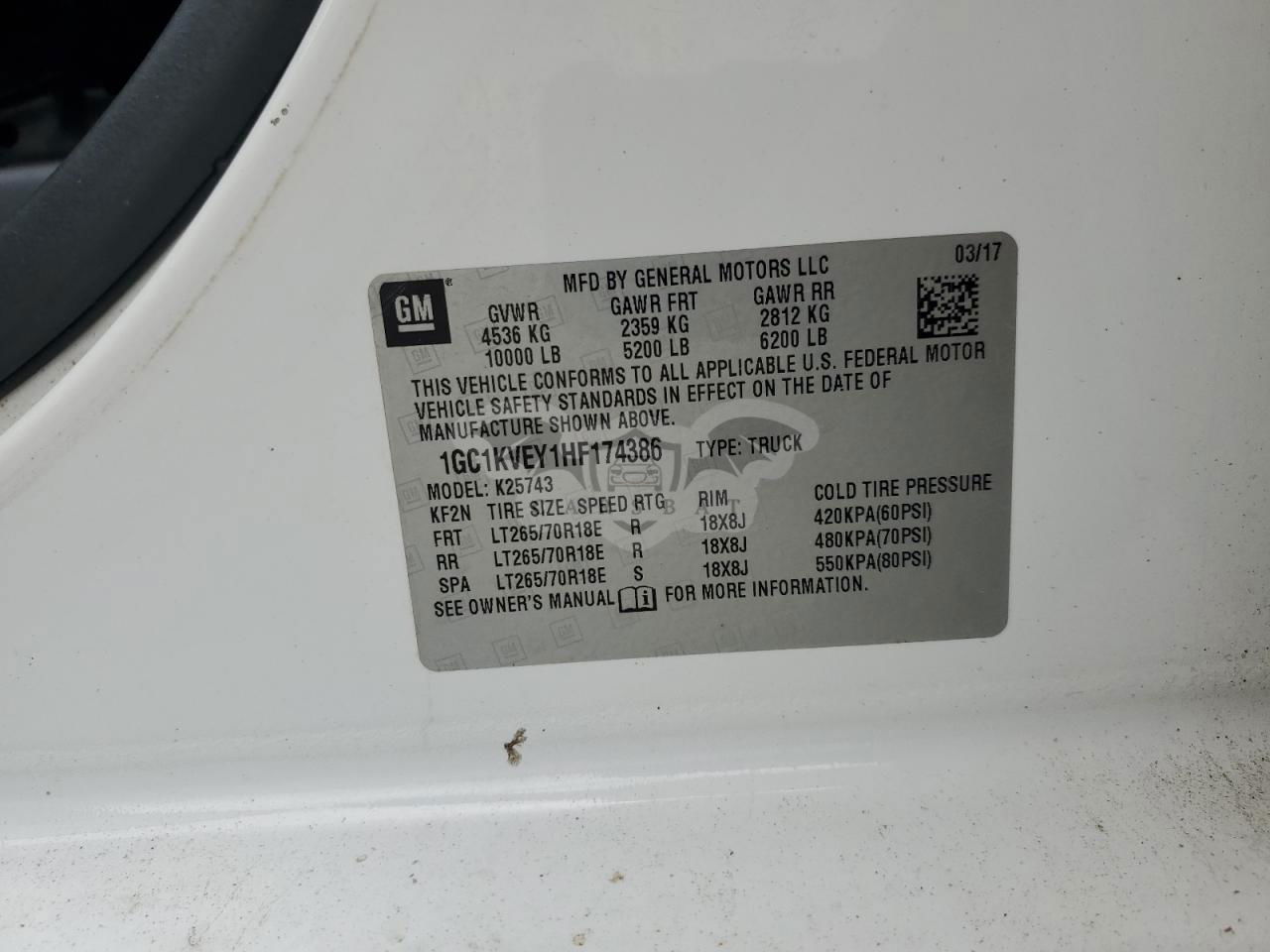 • VIN: 1GC1KVEY1HF174386