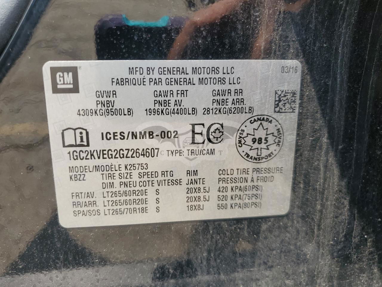 • VIN: 1GC2KVEG2GZ264607