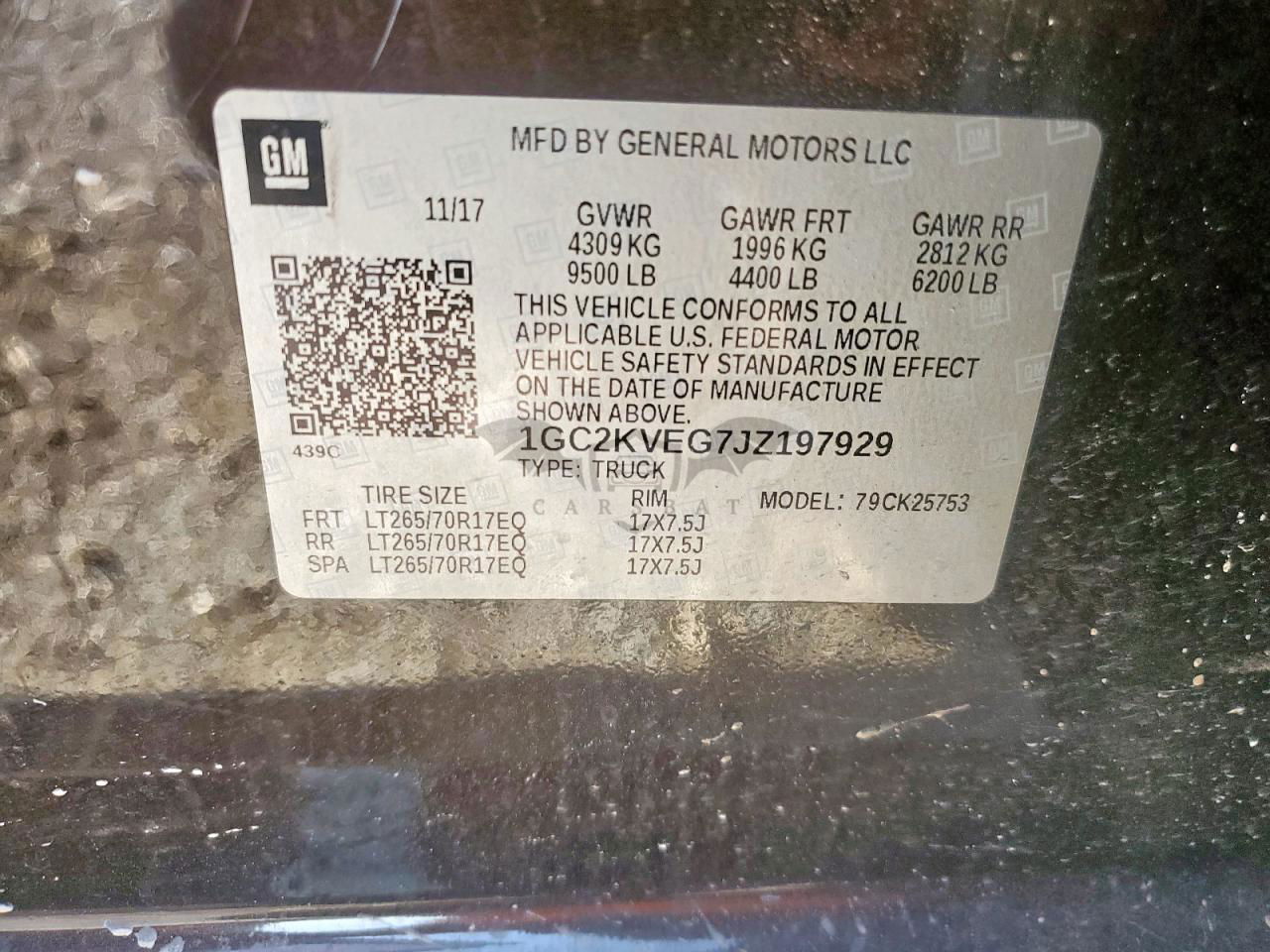 • VIN: 1GC2KVEG7JZ197929