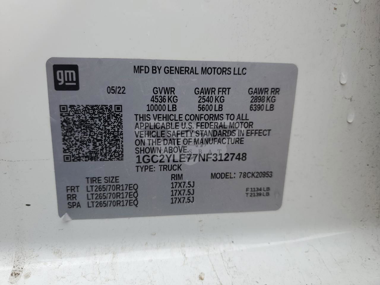 • VIN: 1GC2YLE77NF312748