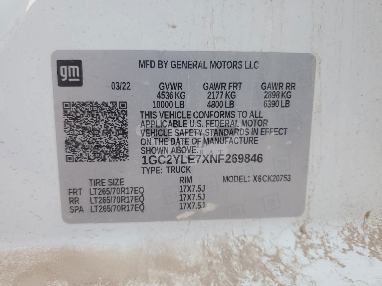 • VIN: 1GC2YLE7XNF269846