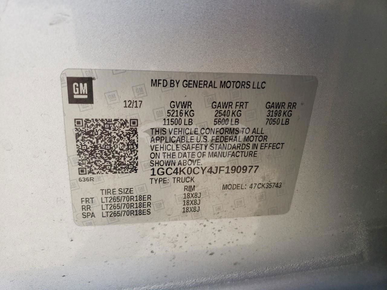 • VIN: 1GC4K0CY4JF190977
