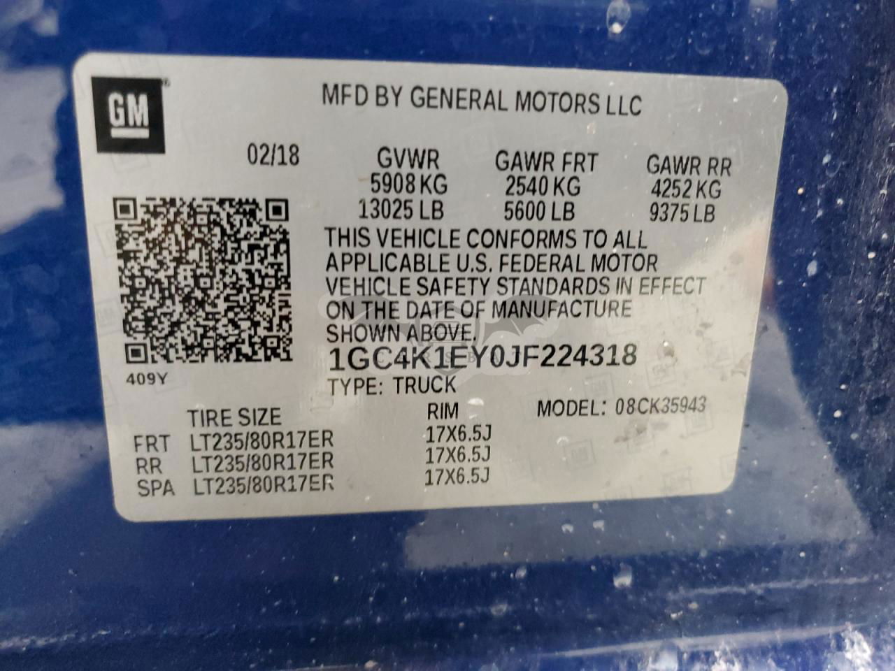 • VIN: 1GC4K1EY0JF224318