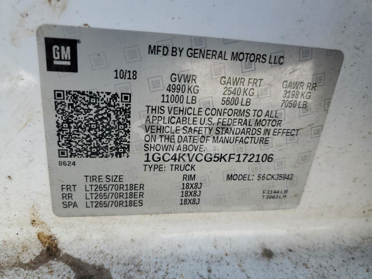 • VIN: 1GC4KVCG5KF172106