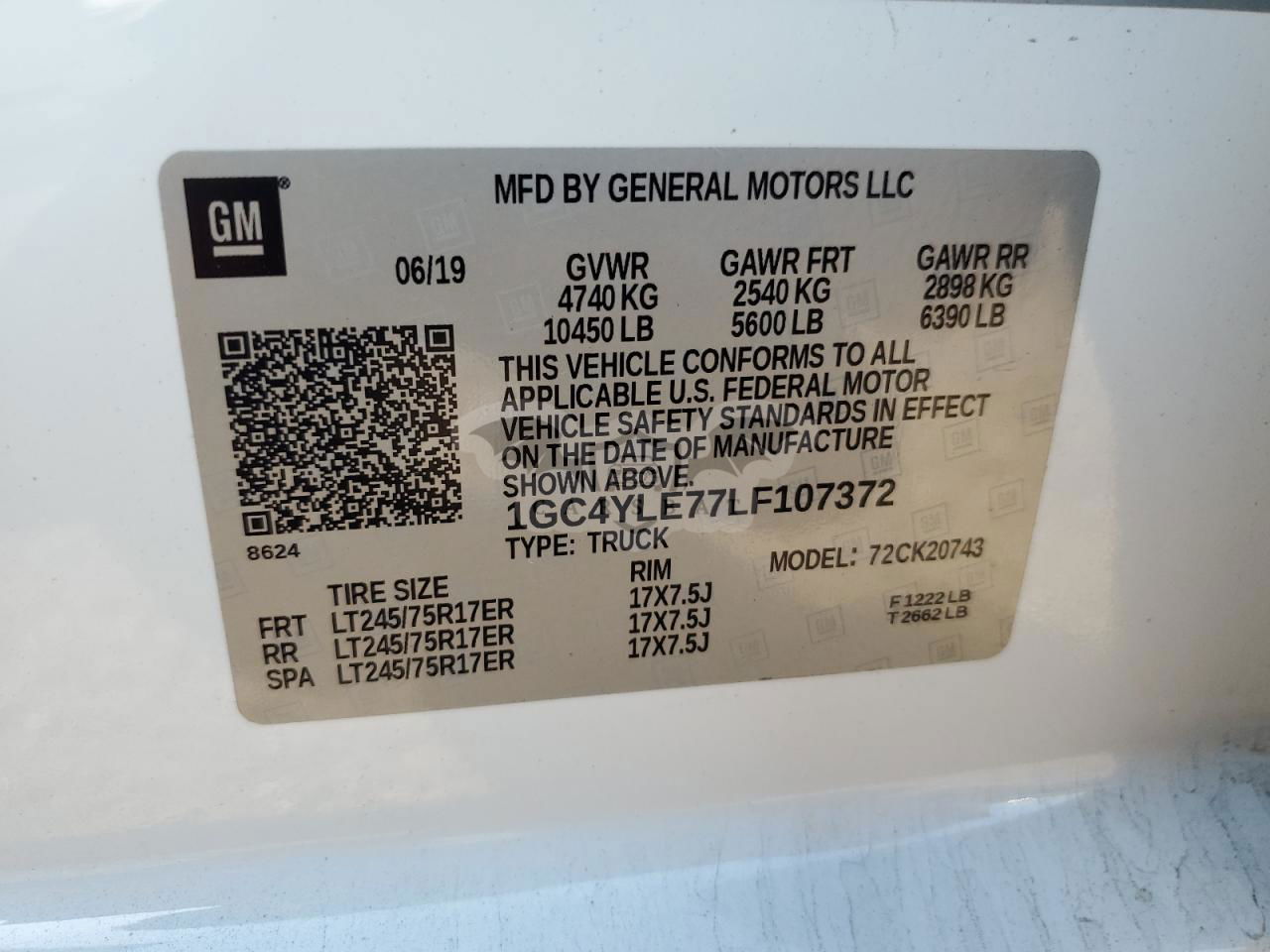 • VIN: 1GC4YLE77LF107372