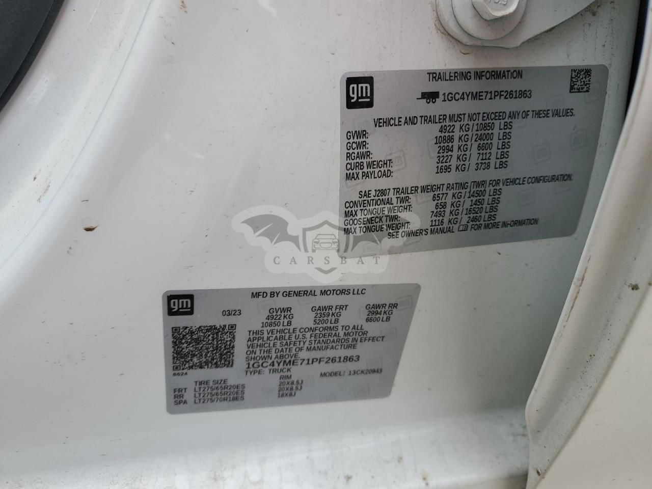 • VIN: 1GC4YME71PF261863