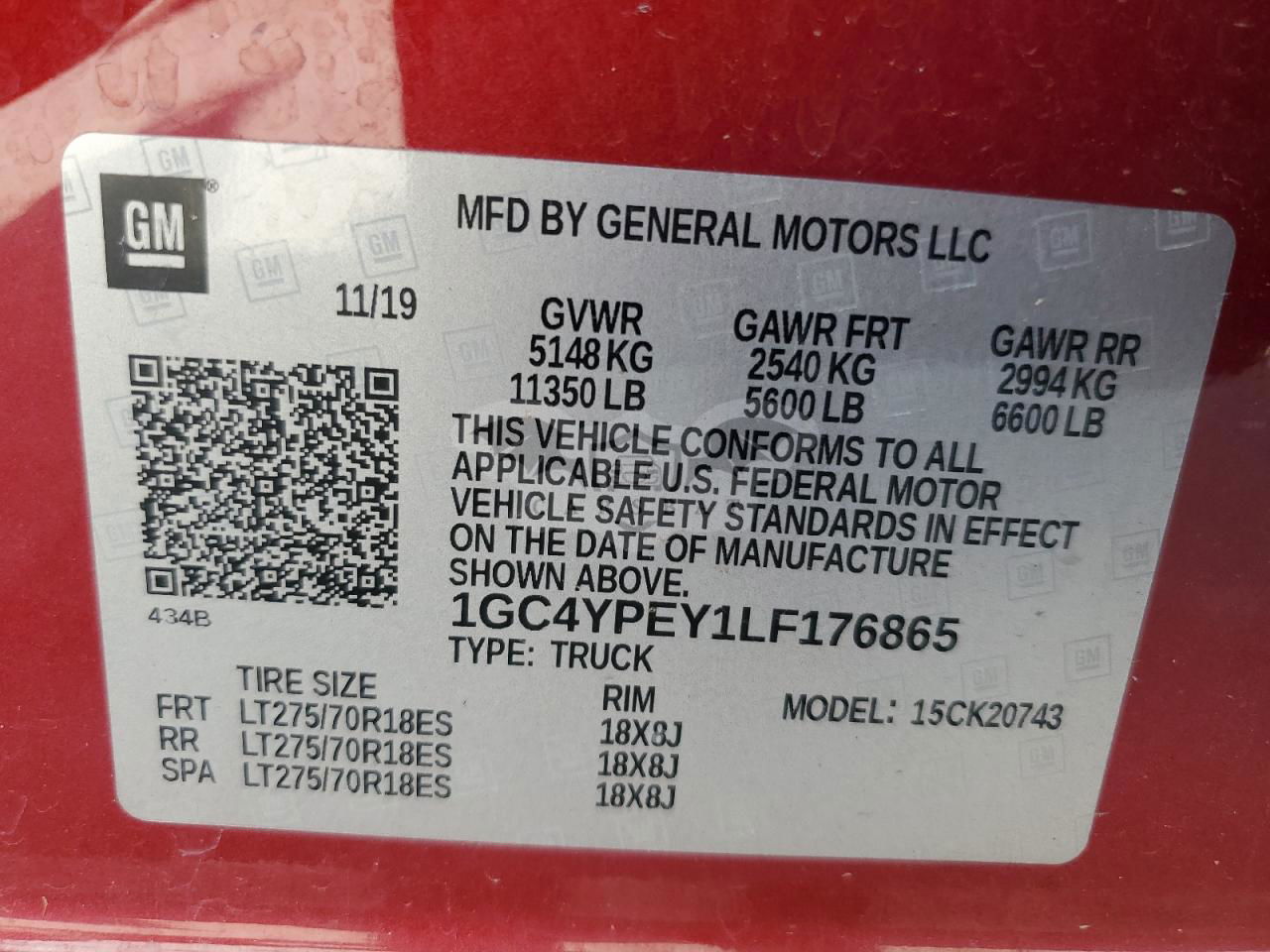 • VIN: 1GC4YPEY1LF176865