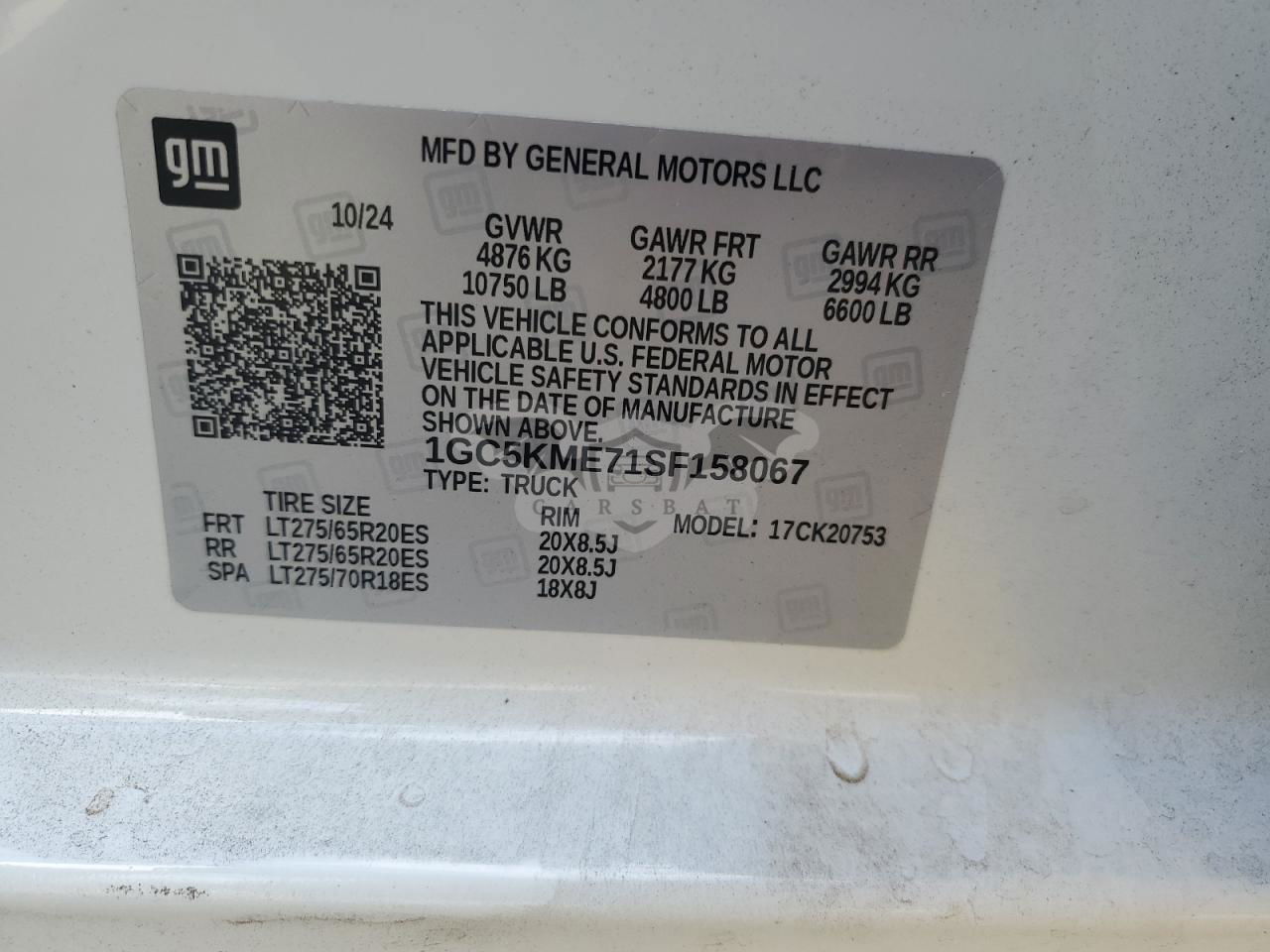 • VIN: 1GC5KME71SF158067