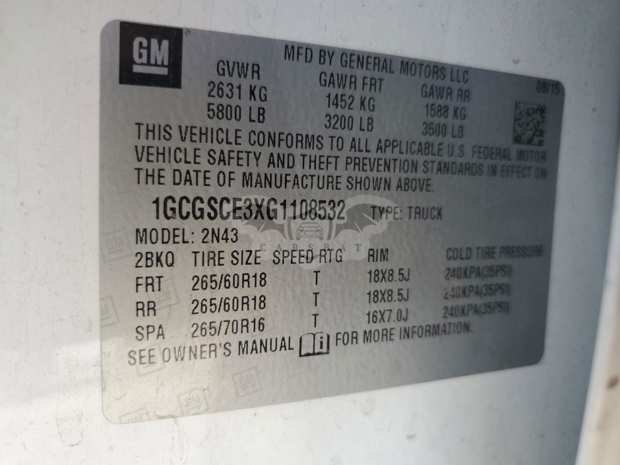 • VIN: 1GCGSCE3XG1108532