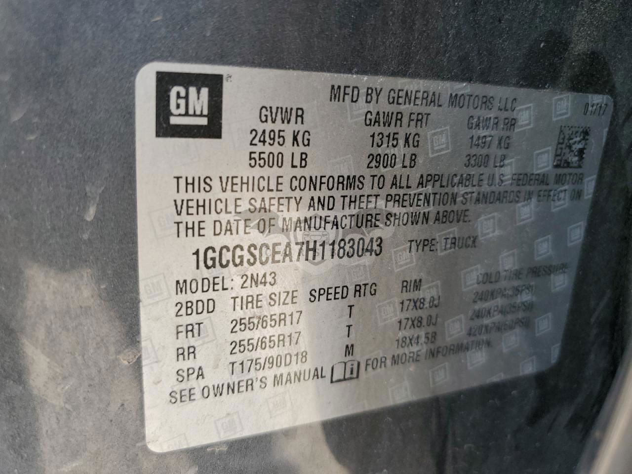 • VIN: 1GCGSCEA7H1183043