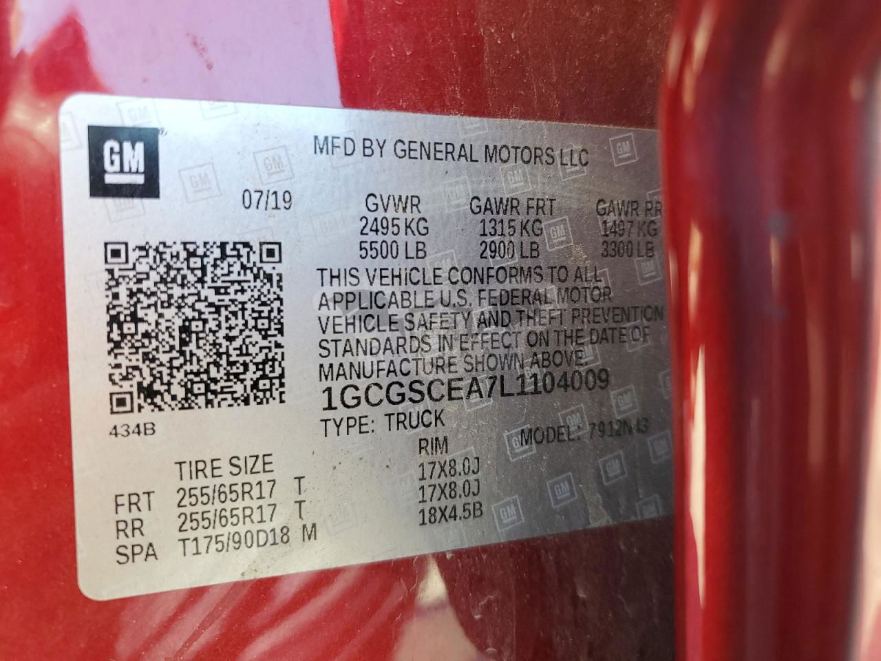 • VIN: 1GCGSCEA7L1104009