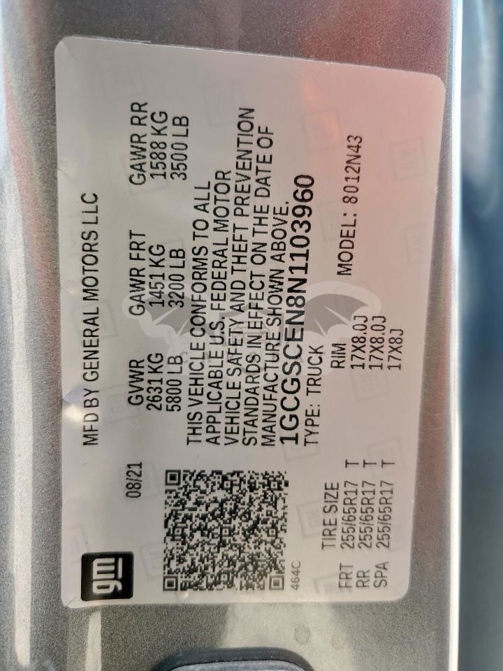 • VIN: 1GCGSCEN8N1103960