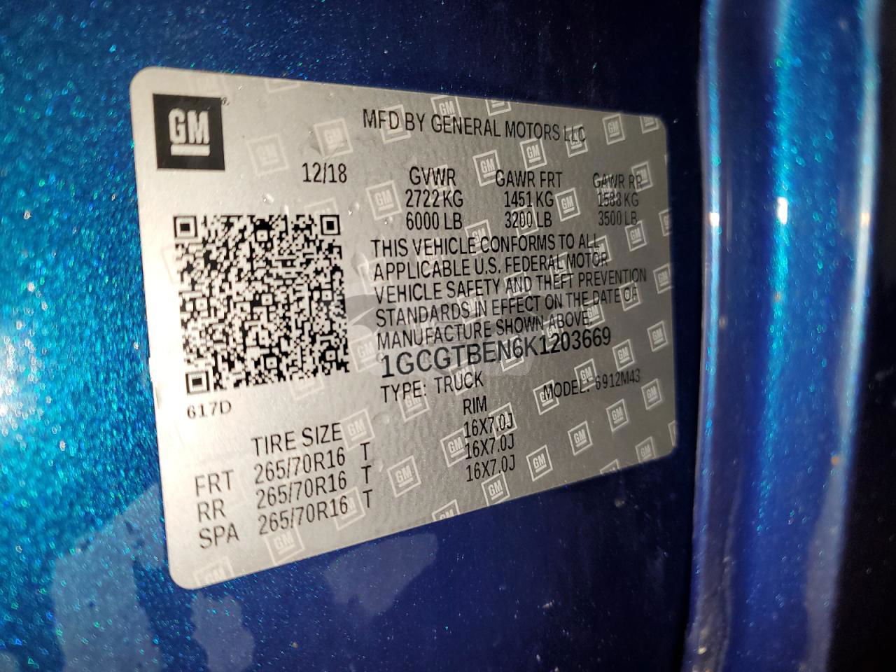 • VIN: 1GCGTBEN6K1203669