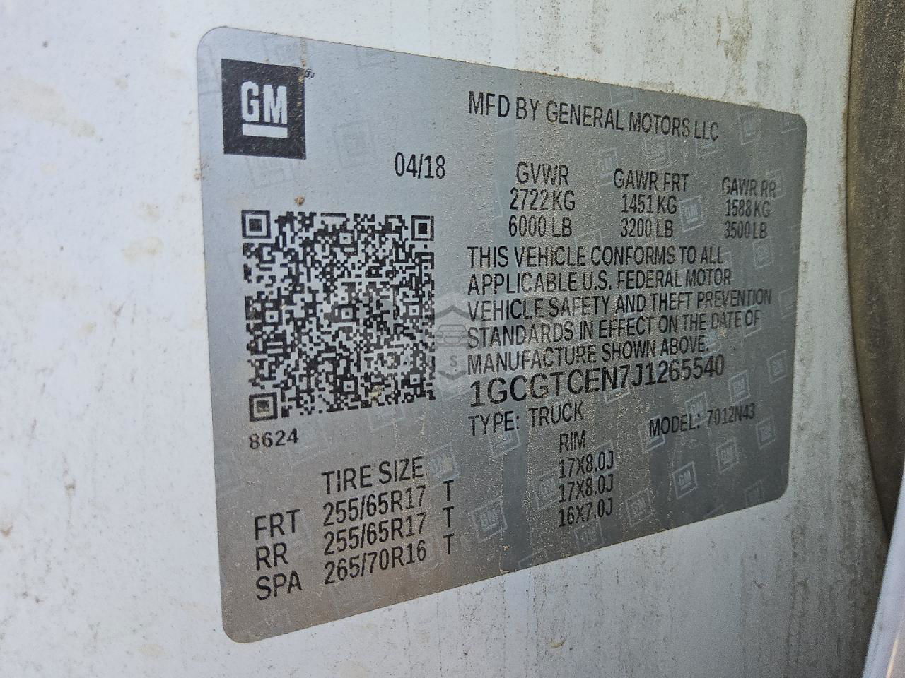• VIN: 1GCGTCEN7J1265540