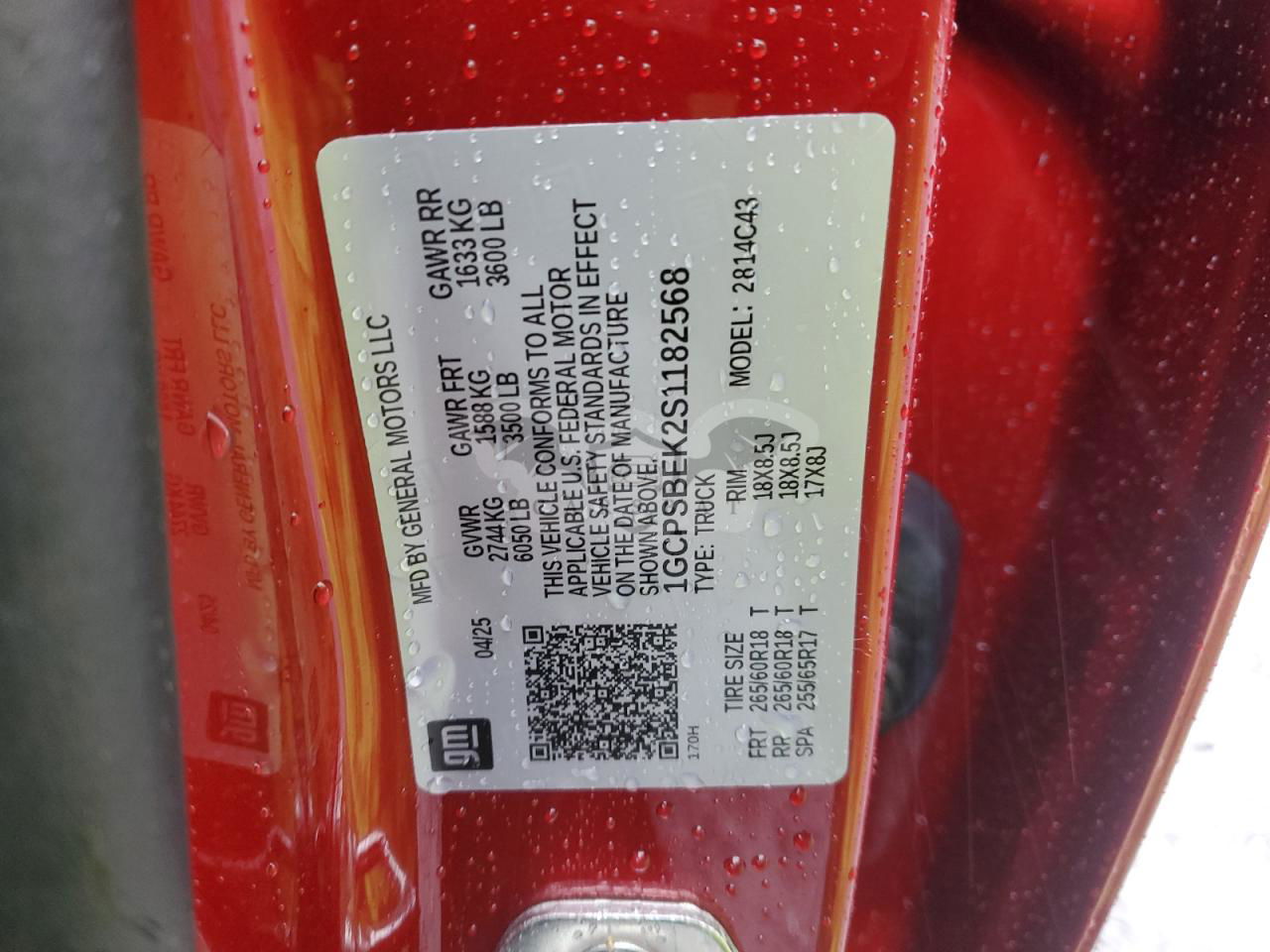 • VIN: 1GCPSBEK2S1182568