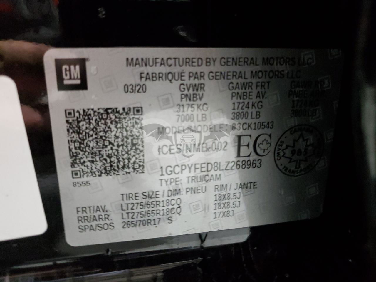 • VIN: 1GCPYFED8LZ268963