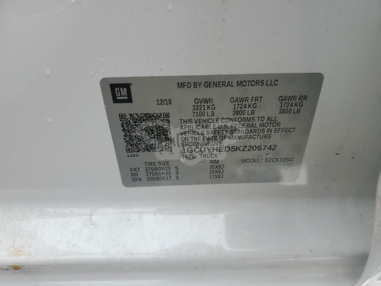 • VIN: 1GCUYHED5KZ206742