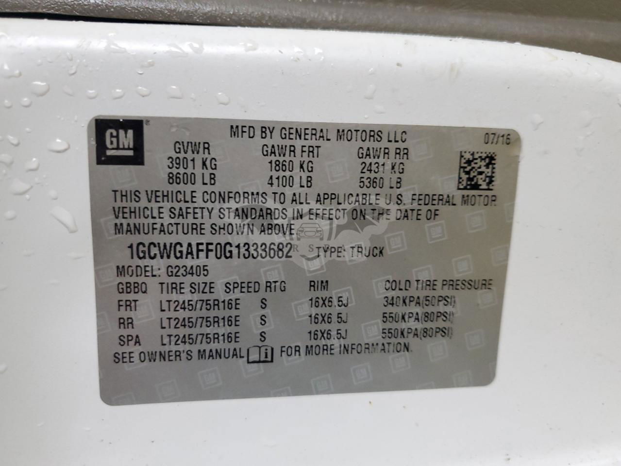 • VIN: 1GCWGAFF0G1333682