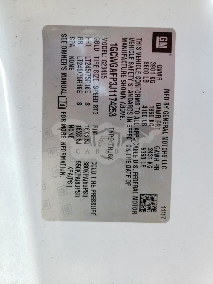 • VIN: 1GCWGAFP3J1174253