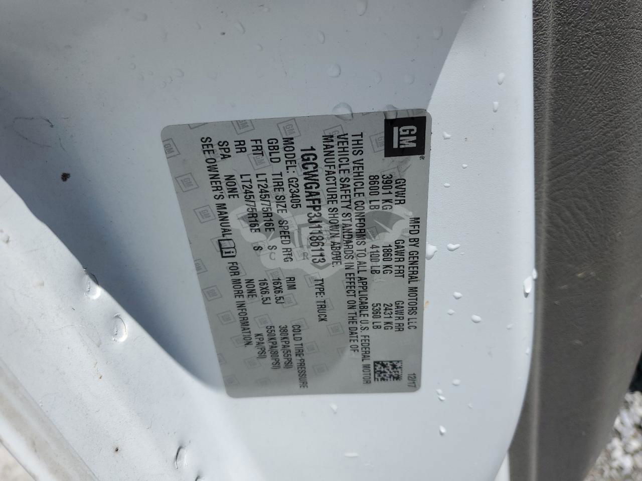 • VIN: 1GCWGAFP3J1186113