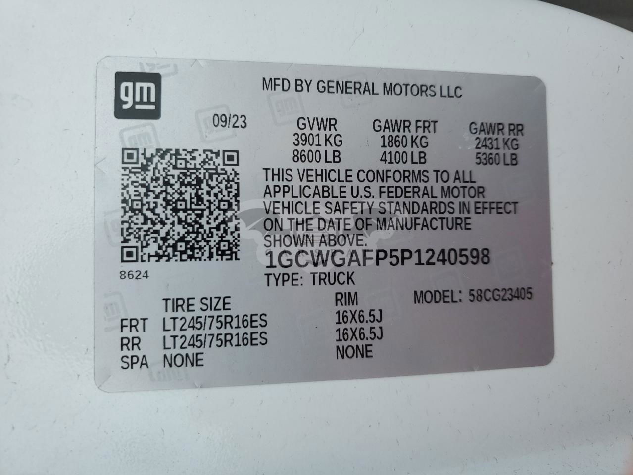 • VIN: 1GCWGAFP5P1240598
