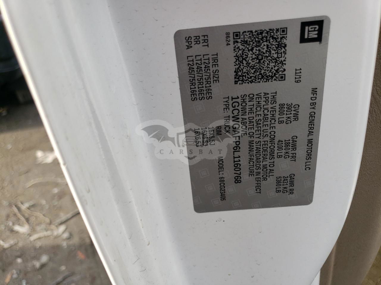 • VIN: 1GCWGAFP6L1160768