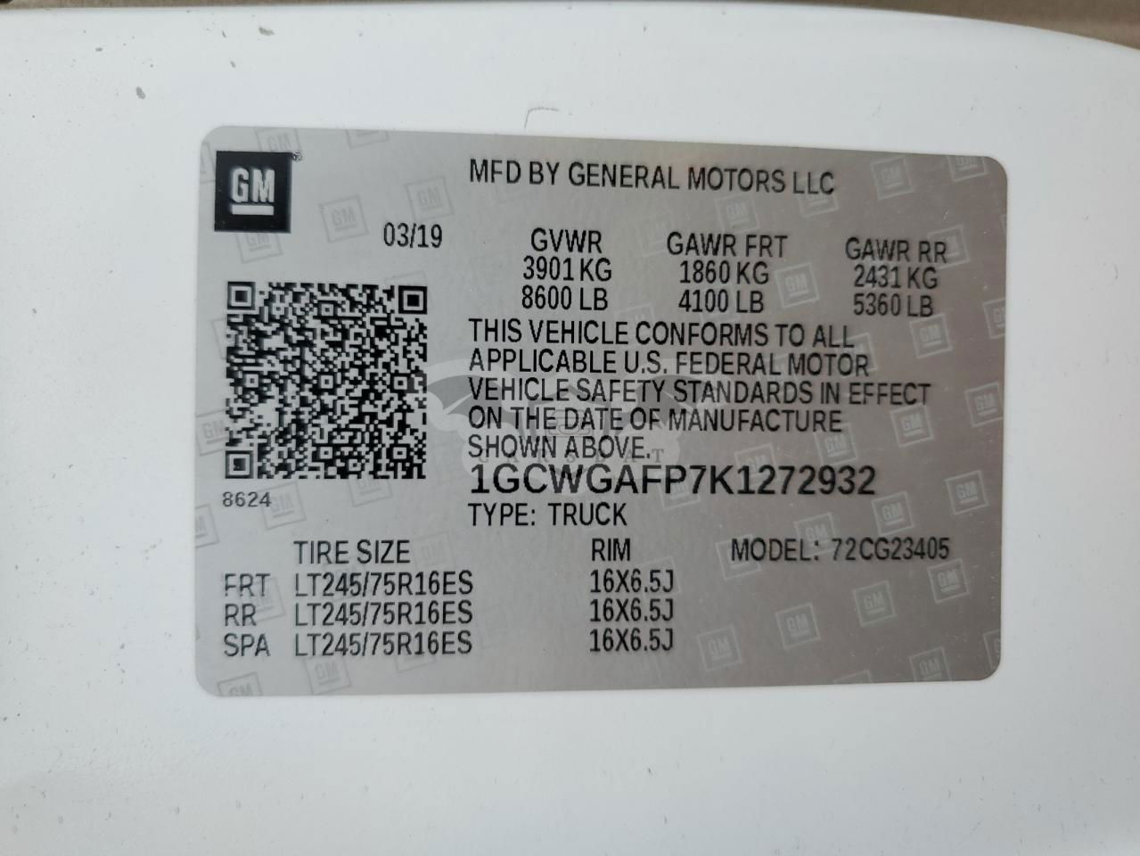 • VIN: 1GCWGAFP7K1272932