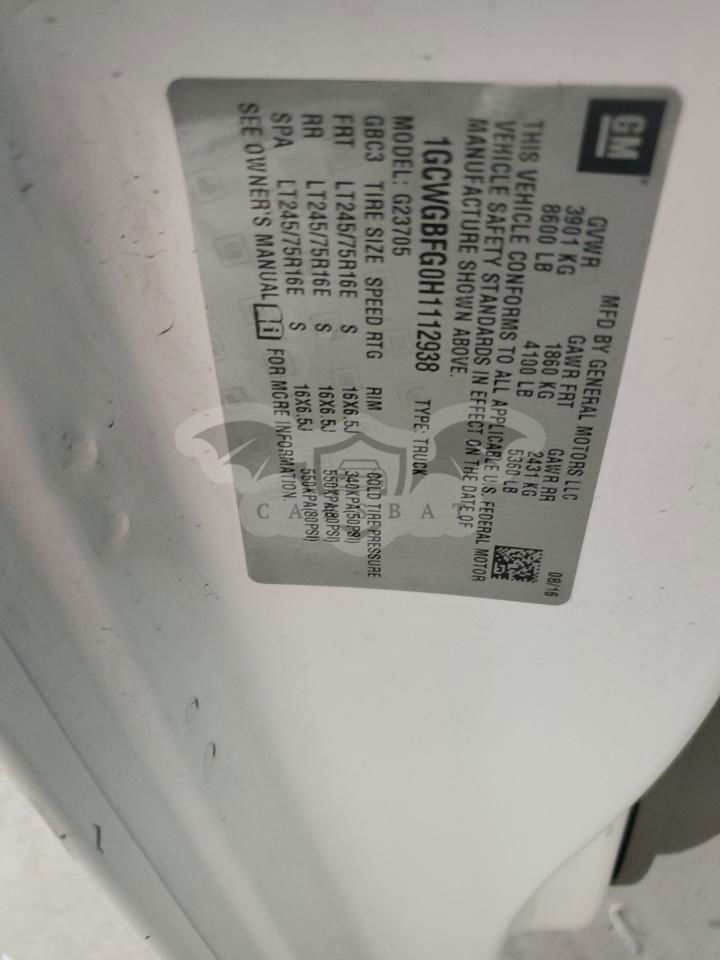• VIN: 1GCWGBFG0H1112938