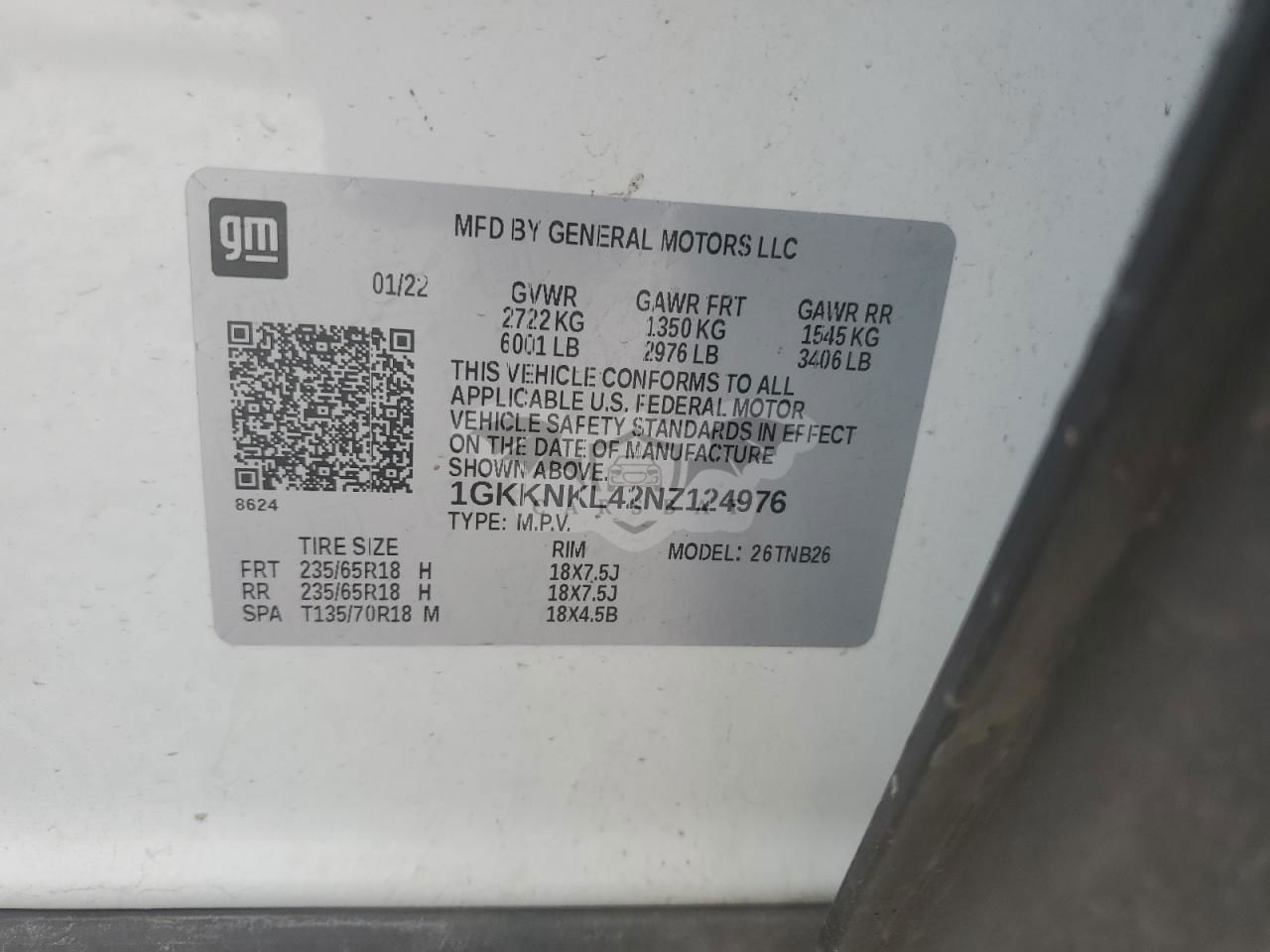 • VIN: 1GKKNKL42NZ124976