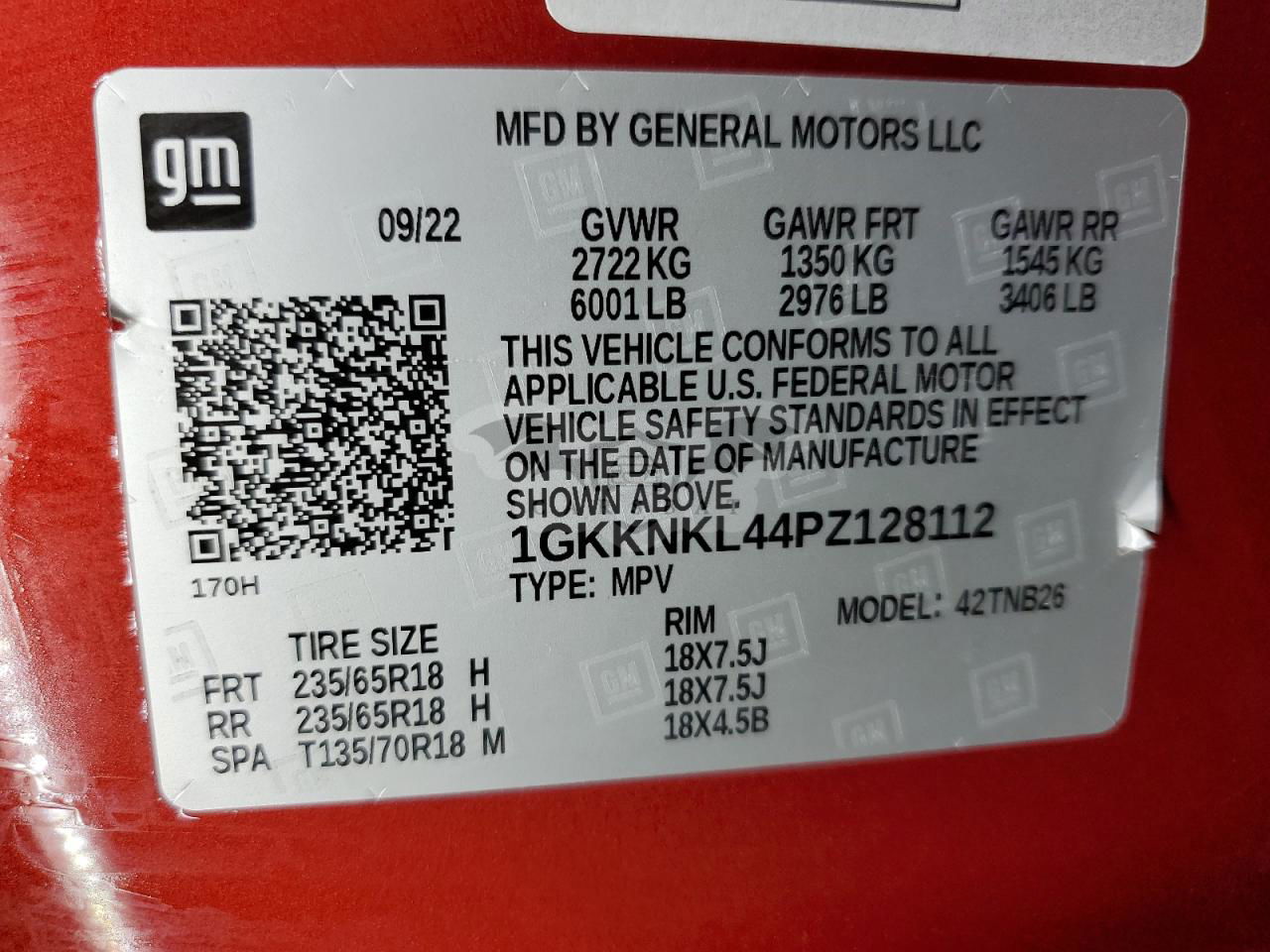 • VIN: 1GKKNKL44PZ128112