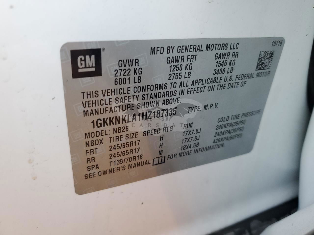 • VIN: 1GKKNKLA1HZ187335