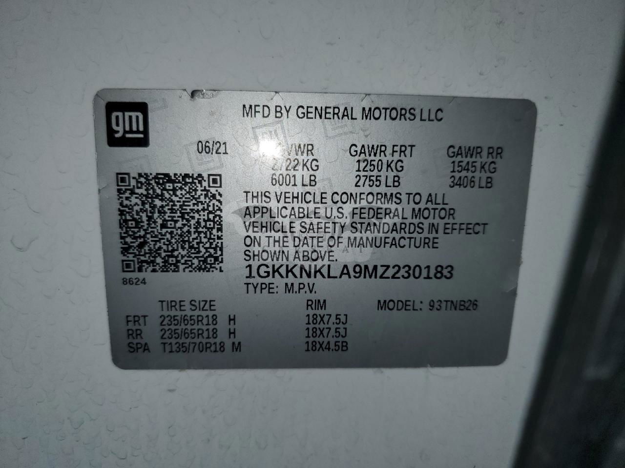 • VIN: 1GKKNKLA9MZ230183
