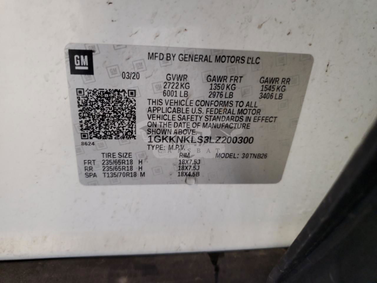 • VIN: 1GKKNKLS3LZ200300
