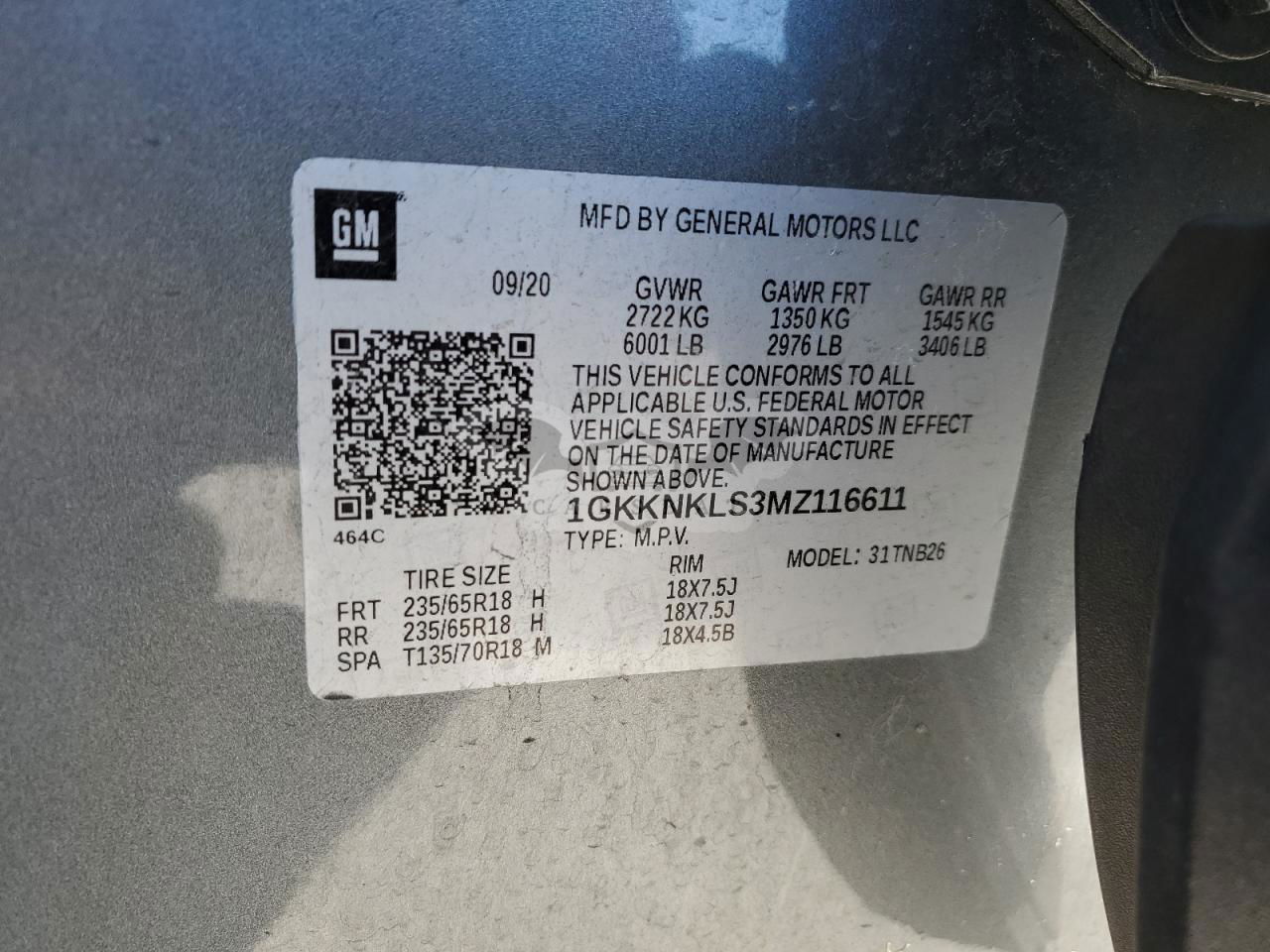 • VIN: 1GKKNKLS3MZ116611