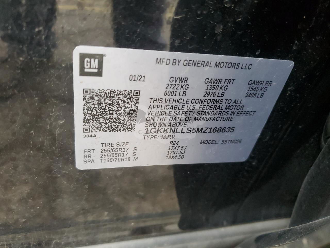 • VIN: 1GKKNLLS5MZ168635