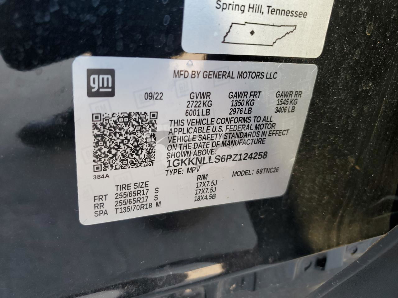 • VIN: 1GKKNLLS6PZ124258