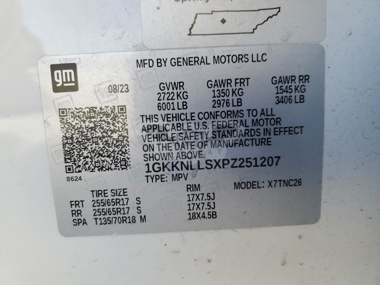 • VIN: 1GKKNLLSXPZ251207